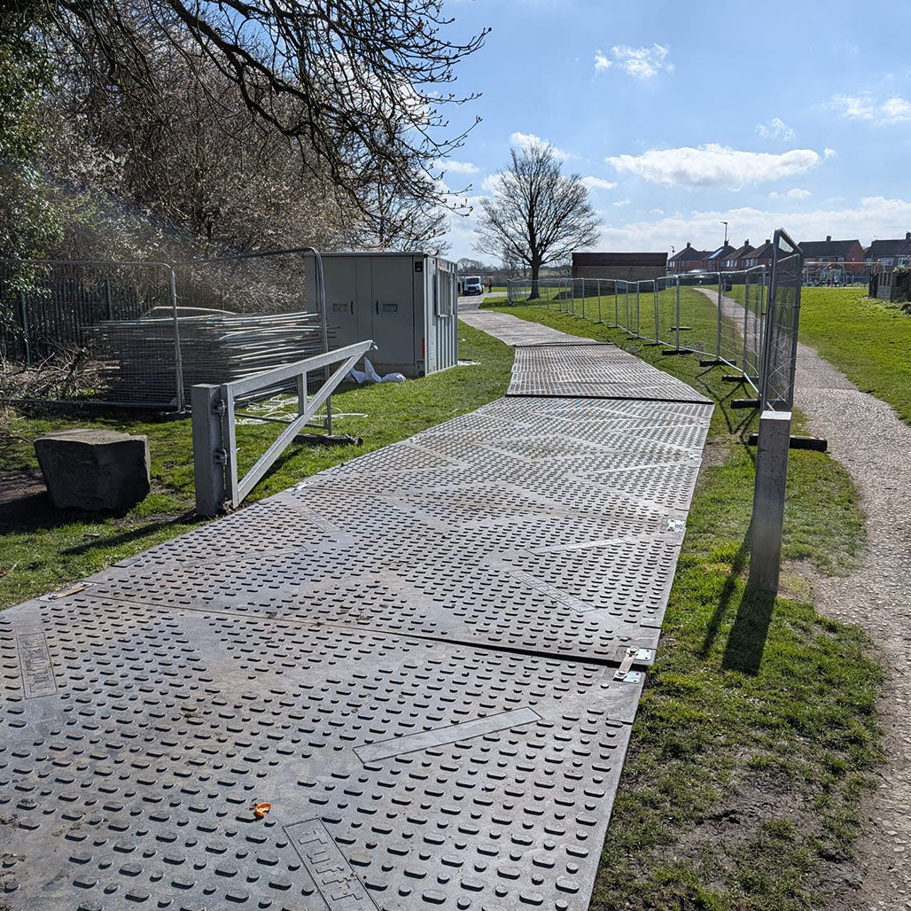 TuffTrak mats enabled safe access to manholes and pipework during a sewage infrastructure project near an RAF base in Northallerton.